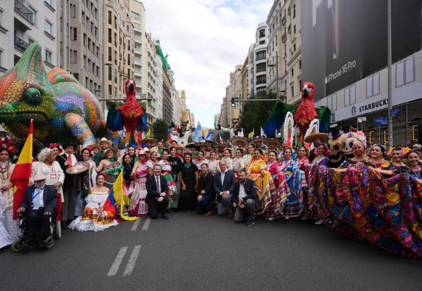 La Cabalgata de la Hispanidad tuvo lugar con representación de todos los países participantes que desfilaron por primera vez por la Gran Vía madrileña, con la presencia de seis espectaculares carrozas dejando en alto su país.